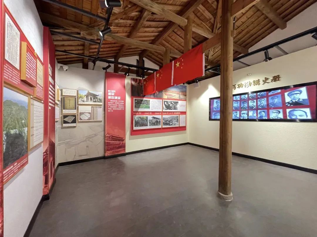 設(shè)計團隊以毛澤東《如夢令·元旦》中“風(fēng)展紅旗如畫”的意境為設(shè)計出發(fā)點,提煉出“薪火紅”“軍裝藍”“曙光黃”“苦色灰”四個主色,并搭配多媒體、藝術(shù)品和文物輔助,續(xù)寫老區(qū)新榮光。