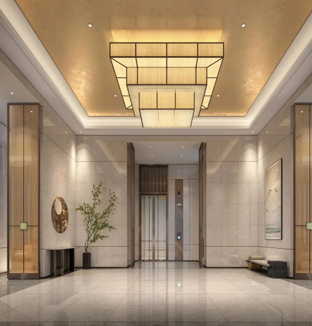 入戶大堂打造空間秩序和儀式感,設(shè)計師通過對光影的創(chuàng)造引入,呈現(xiàn)浩然之氣,全新的藝術(shù)審美給住戶帶來更多的視覺享受。將景觀融入室內(nèi),強調(diào)室內(nèi)外互動意境,讓人充分體驗到室內(nèi)空間與自然環(huán)境的融合。