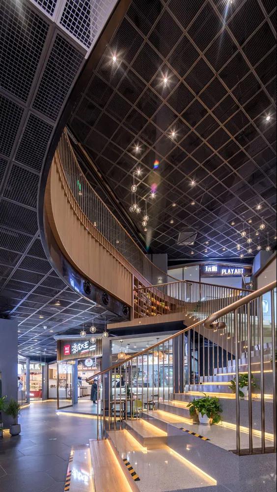 商業入口的設計更是整個項目的吸睛之處,天花的造型向外延伸,以此模糊室內外的界限,天花的造型提取于一棵枝繁葉茂的大樹向四周生長蔓延。