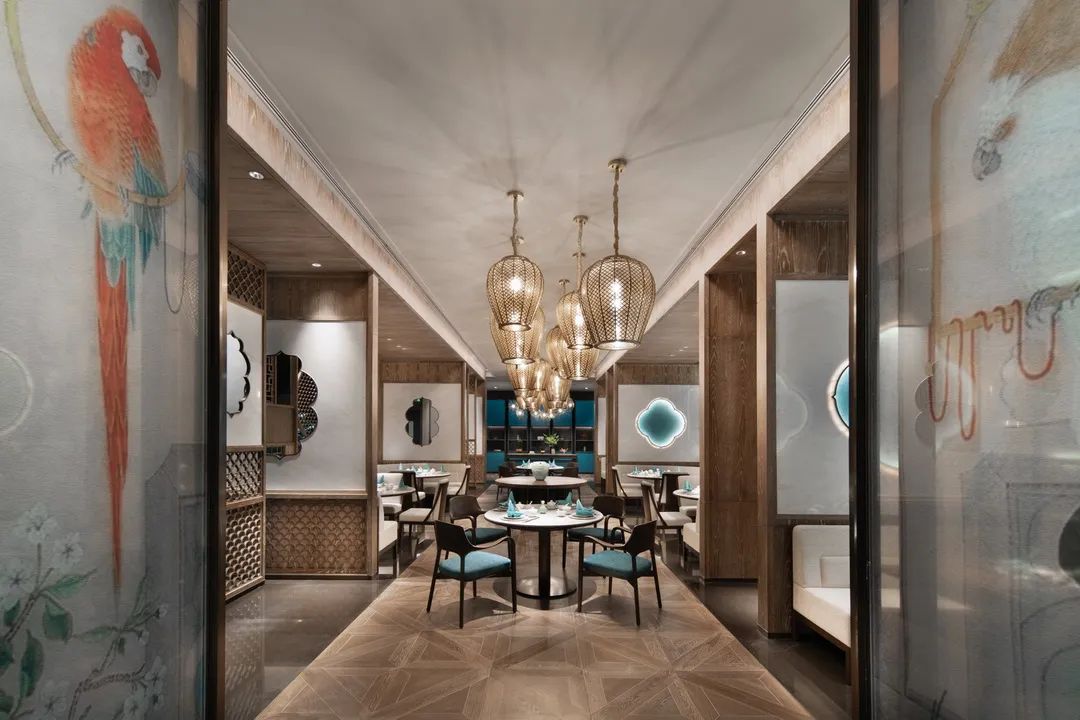 如果說大堂是視覺的統(tǒng)治,是高亢的起首樂章,那中餐廳-彩豐樓則是集視覺、觸覺、味覺、嗅覺、聽覺的多重復調(diào),是黃昏下的耳語,庇護著想象與回憶。