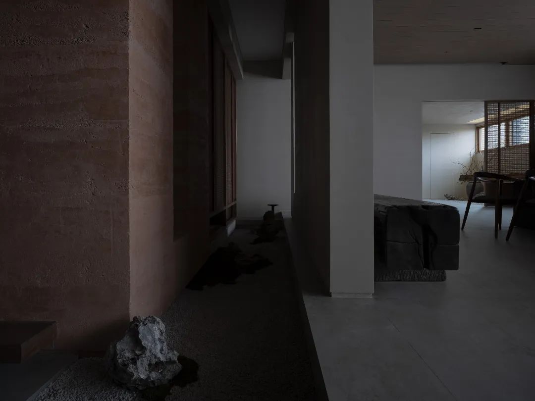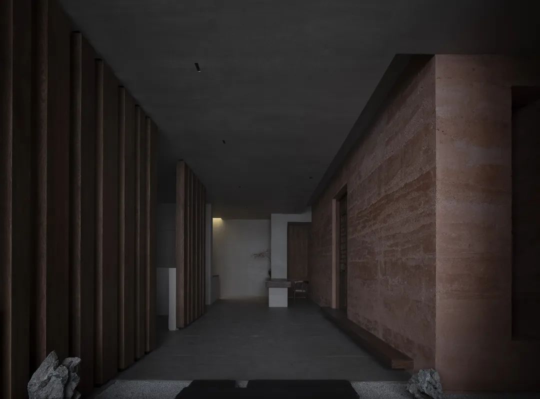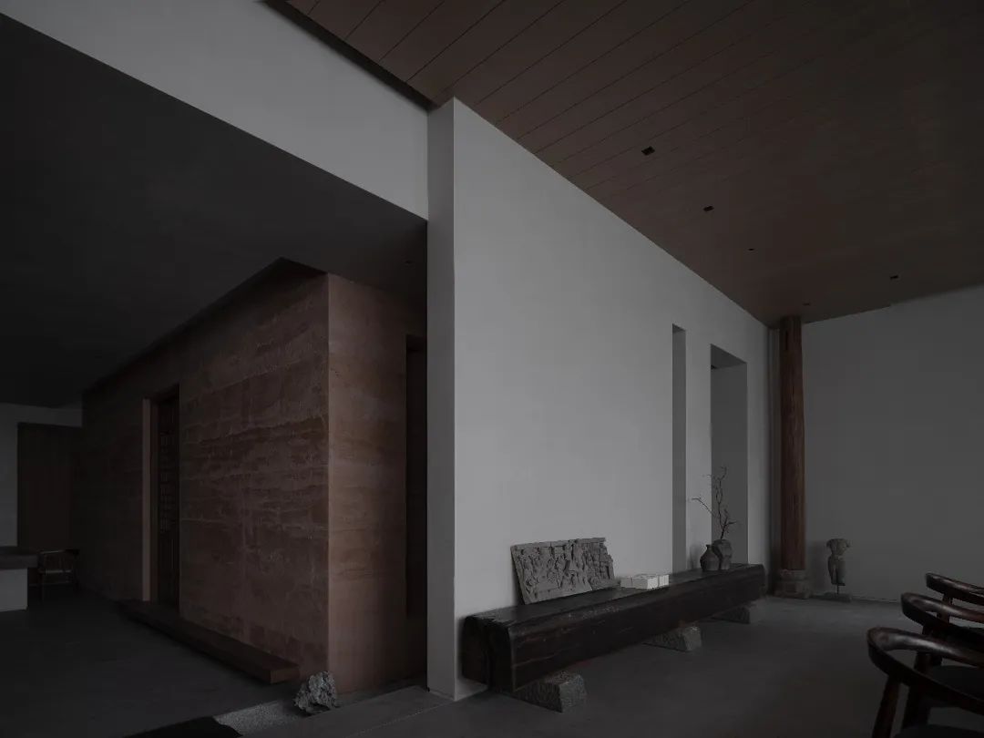 墻面夯土的自然紋理與大地的淳樸遙相呼應,充滿歲月和藝術美感,展現內斂超然,張弛有度的設計美學。