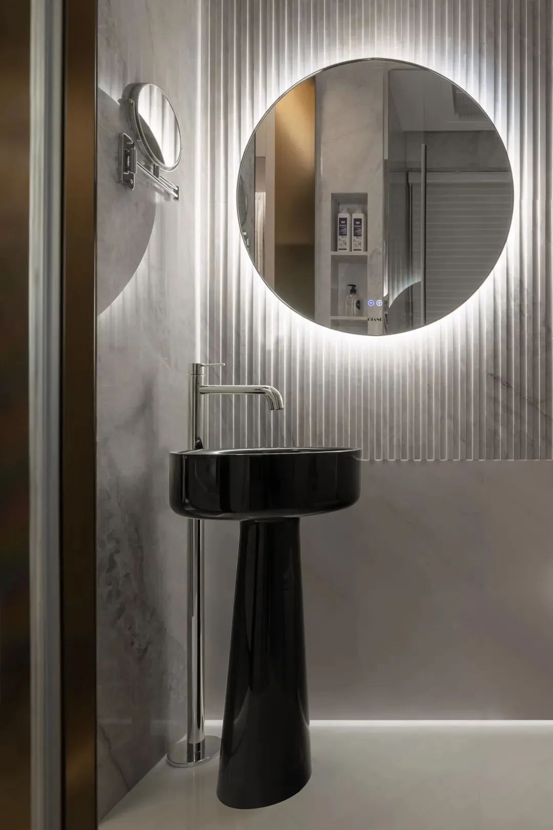 環視所見,硬朗與柔軟、方正與圓潤、明與暗……交融共舞。這一切背后都源于設計師對室內感受和細節質感的精準拿捏。